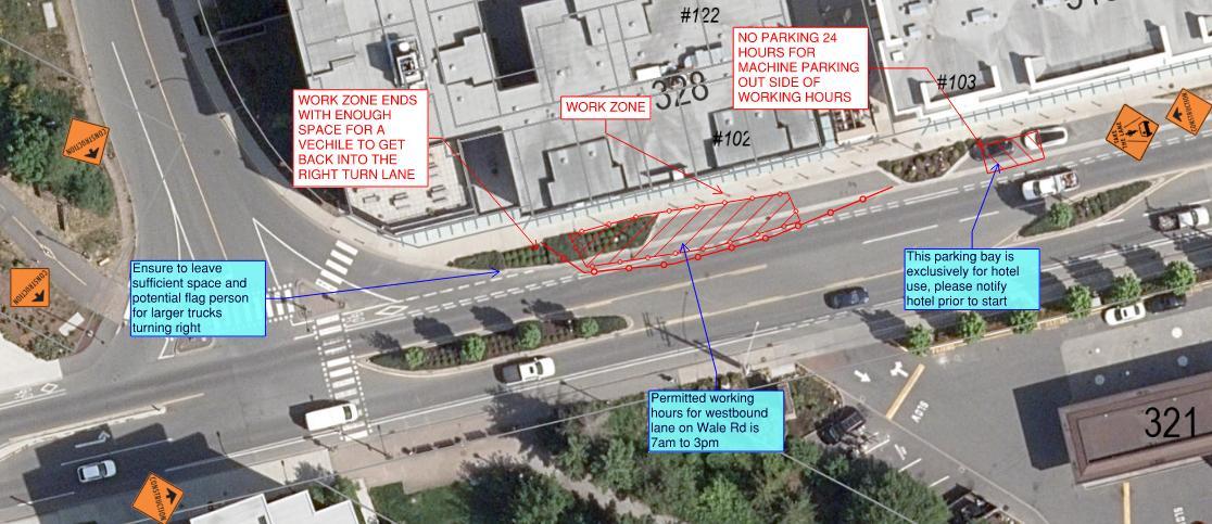 All repair and resurfacing work will be completed from the right turn lane on Wale Rd., with sufficient space maintained to allow one vehicle length in the turn lane prior to the intersection between the hours of 7 a.m. and 3 p.m. daily. Please expect delays during this time.